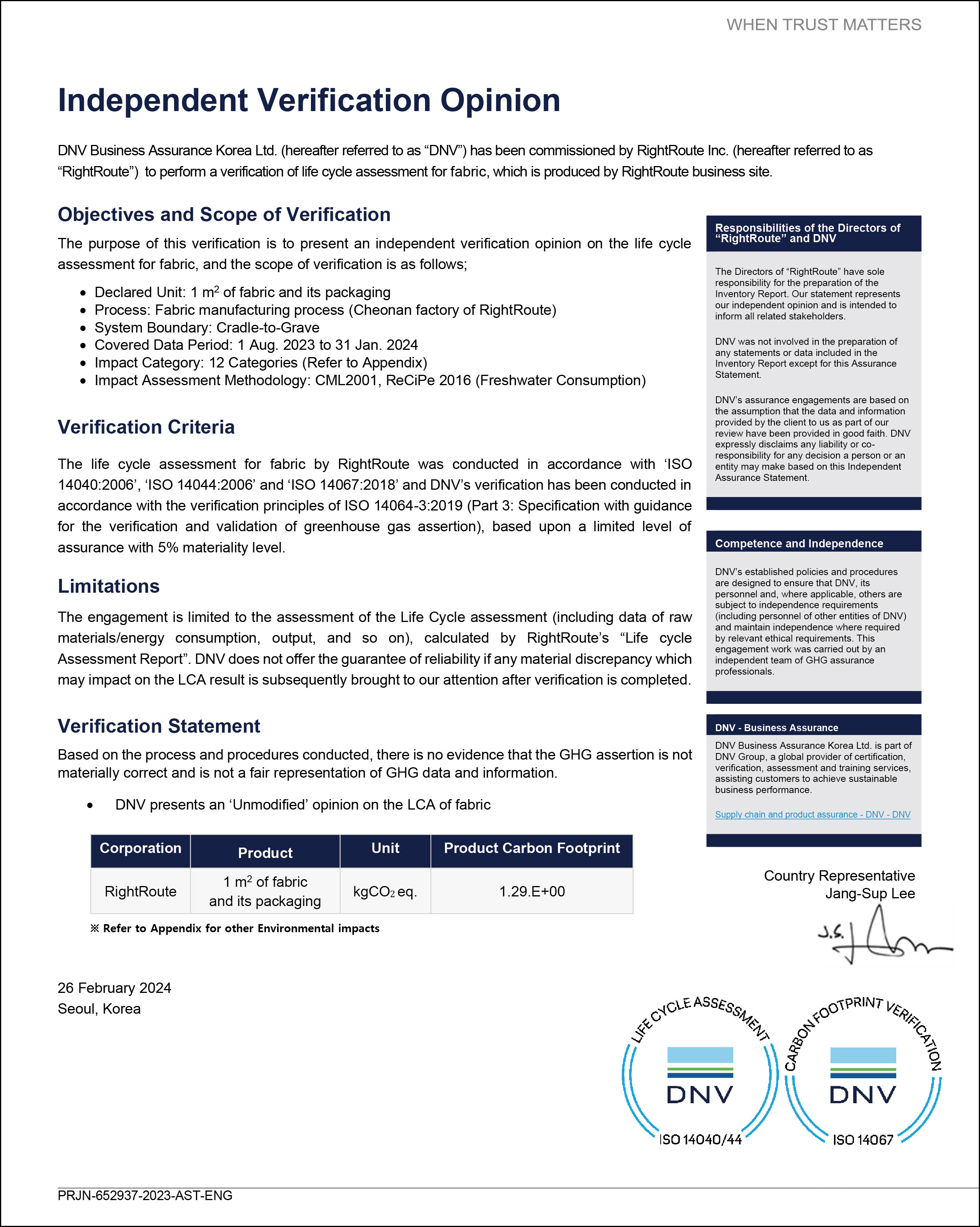 TEXNIC® conducted a formal LCA assessment of its PE laminated fabrics through a certified LCA organization. The results showed a carbon footprint of 1.29 kgCO₂e/㎡.